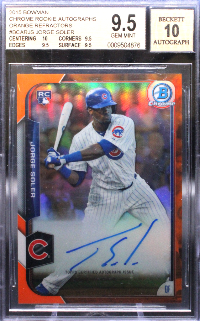 2015 Topps Bowman – Jorge Soler BCARJS – Orange Refractor Auto /25 – Beckett 9.5 / 10