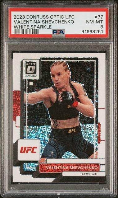 2023 Panini Donruss Optic UFC – Valentina Shevchenko 77 – White sparkle – PSA NM-MT 8