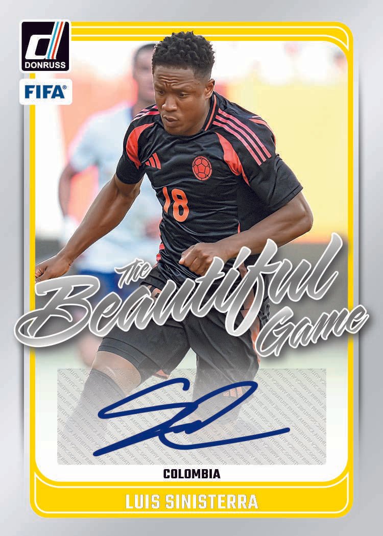 – Collect 3 Autograph Inserts (Signature Series, The Beautiful Games Autographs, The Beautiful Game Dual Autographs) and 2 Memorabilia Inserts (Kit Kings, Kit Series). Find 1 autograph and 1 memorabilia card per box, on average.