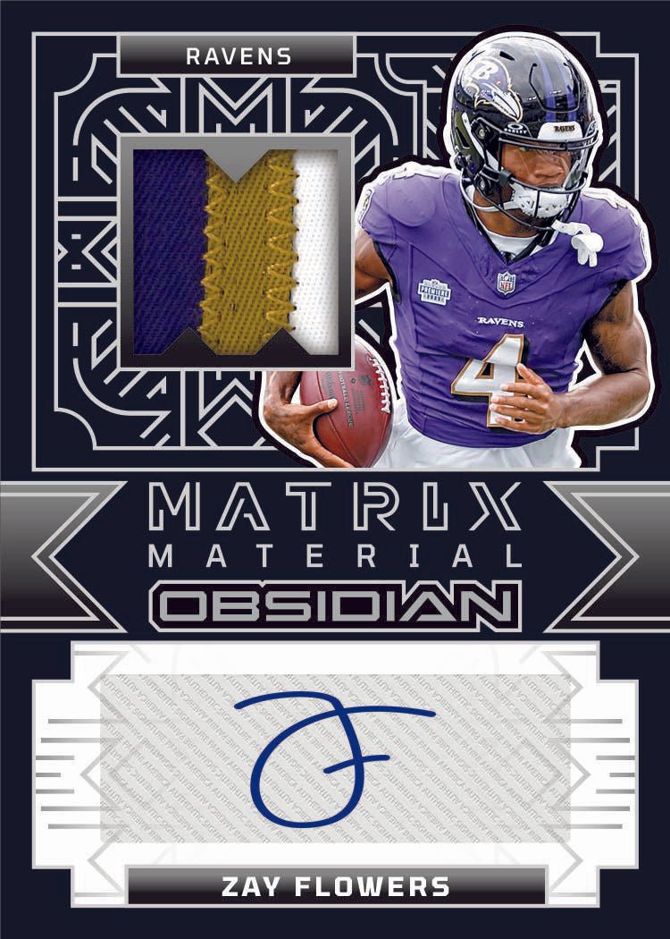 – Panini Americaโs popular Obsidian Football franchise returns for the 2024 NFL season, boasting its trademark blend of dark Optichrome aesthetics and futuristic inserts.