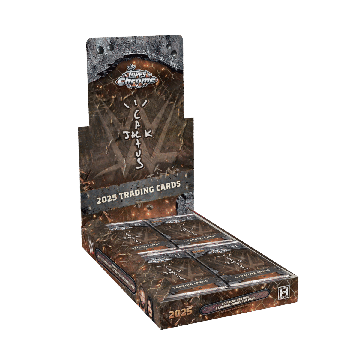 – Topps Chrome Cactus Jack WWE makes its hobby debut! Look for a wide-variety of chase parallels, autographs, and case hit inserts!
