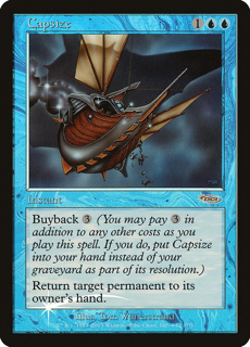 Buyback 3 (You may pay 3 in addition to any other costs as you play this spell. If you do, put Capsize into your hand instead of your graveyard as part of its resolution.)Return target permanent to…