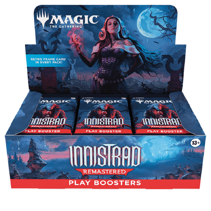 Play Boosters are the best way to explore all the gothic horror world of Innistrad has to offer. Play Boosters are balanced for Limited play, perfect to open just for fun, and contain at least one foil card and one Retro frame card. A full booster display will let your players sink their teeth into the very best of Magic’s spookiest setting.
