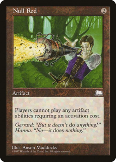 Players cannot play any artifact abilities requiring an activation cost. Rarity:R Card Type:Artifact Flavor:Gerrard: “But it doesn’t do anything!”Hanna: “No—it does nothing.” Artist:Anson Maddocks
