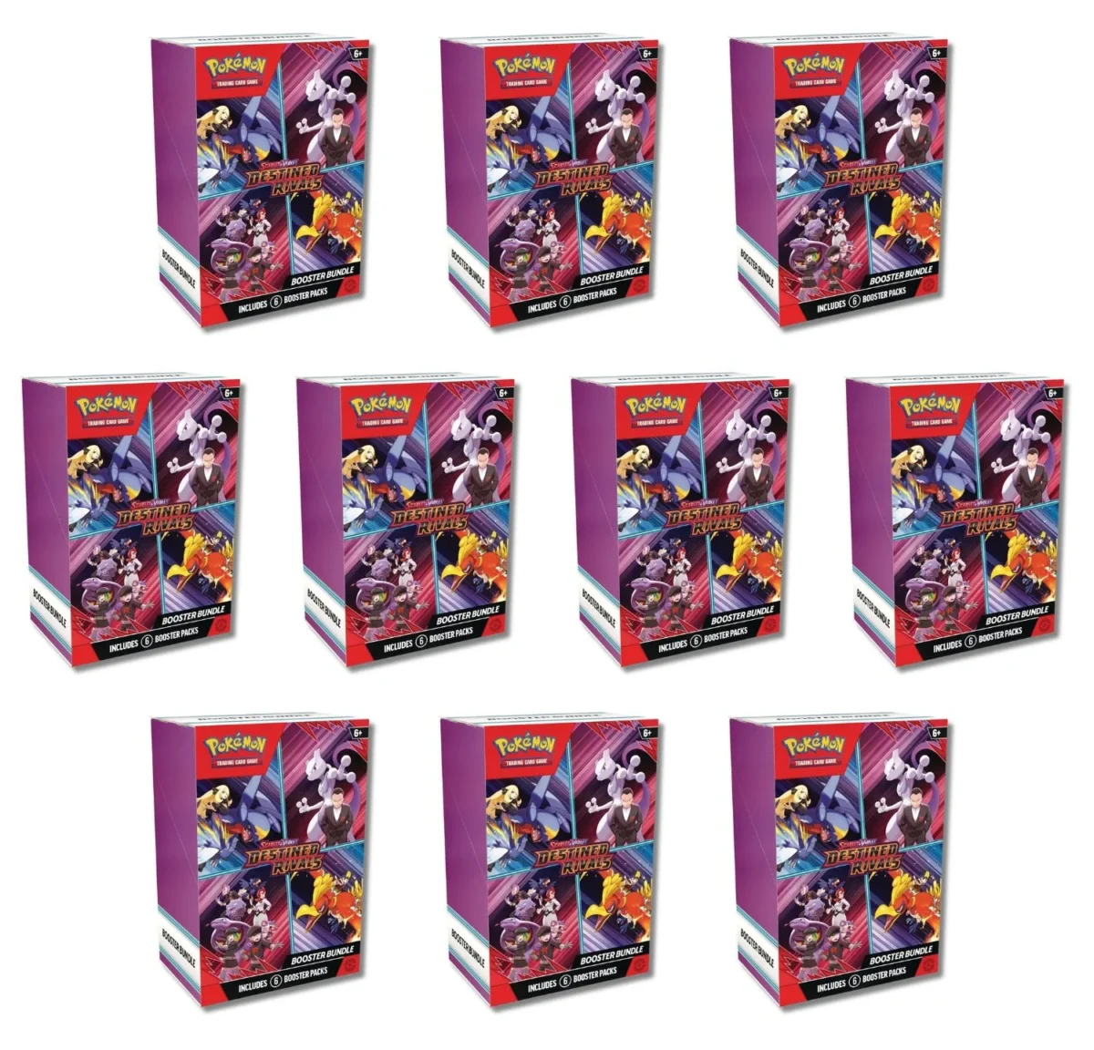 Expand your collection with the Pokรฉmon TCG: Scarlet & Violet – Destined Rivals Booster Bundle. Each Booster Bundle contains six booster packs from the Destined Rivals expansion, so with this 10-pack you will get a total of 60 booster packs. Dive into the vibrant world of Pokรฉmon battles with this bundle that caters to both collectors and competitive players. Discover cards with incredible abilities and enjoy the captivating artwork that adds a visual flair to your collection. Perfect for those looking to enhance their gameplay and add variety to their card assortment, this booster bundle 10-pack is a must-have for any Pokรฉmon TCG enthusiast.10-PACK SET: This listing brings ten Pokรฉmon Scarlet & Violet Destined Rivals Booster Bundles.CONTENT: Each booster bundle contains 6 Booster Packs from the Destined Rivals Expansion of the Pokรฉmon TCG card game.EXPAND YOUR COLLECTION: With a wide array of cards, each with amazing artwork and abilities.STUNNING ARTWORK: Features beautifully designed cards that add a visual appeal to your collection and playing experience.