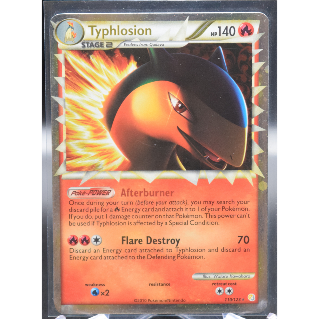 Card Text:Afterburner – Once during your turn (before your attack), you may search your discard pile for a R Energy card and attach it to 1 of your Pokemon. If you do, put 1 damage counter on that Pokemon. This Power can’t be used if Typhlosion is affected by a Special Condition. (Poke-POWER)