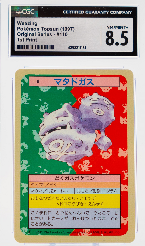 Weezing 110 Topsun 1st Print Blue Back – 1997 Pokemon – CGC Near Mint/Mint+ 8.5