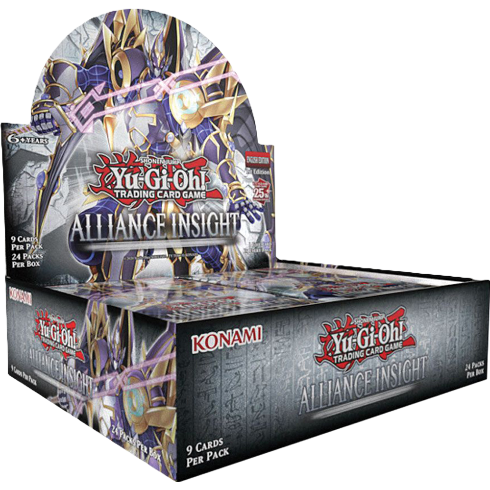 Each booster box contains 24 packs of 9 random cards per pack. Alliance Insight will be arriving with a bang in Spring 2025! As we Link into the VRAINS once more, this 101-card core booster set will be, along with Quarter Century Stampede the month prior, the LAST appearances of the popular Quarter Century Secret Rare card rarity, before it’s gone forever! This is the LAST call! Alliance Insight is jam-packed with exciting cards Duelists won’t want to miss! From new “@Ignister” cards, including a powerful new Link Monster, to new cards for the age-old Skull Servant Deck, to the first new “Dragon Ruler” monsters in years! You can expect all this and so much more yet to be revealed in Alliance Insight! Make sure to check back soon for more information. Alliance Insight contains: 10 Secret Rares 14 Ultra Rares 26 Super Rares 50 Commons (24 of these cards are also available as Quarter Century Secret Rare and 1 special card is ONLY available as a Quarter Century Secret Rare!)
